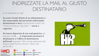Come scrivere una mail per inviare il curriculum - VRFORMAZIONE.IT Lettera di presentazione. Mi raccomando la lettera di presentazione non va allegata alla mail. ... A chi indirizzare l'email. Se hai l'email diretta di un selezionatore o del responsabile del personale indirizzala direttamente a loro, introducendo il testo con "Gent.ma Dott.ssa / Egr. Dott." + nome e cognome.