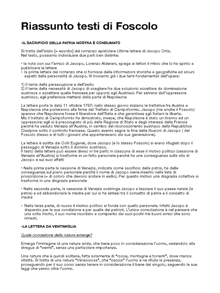 Foscolo, Ugo - Lettera da Ventimiglia - Skuola.net La lettera da Ventimiglia, da Ultime lettere di Jacopo Ortis Lettera del 19 e 20 febbraio, dalle "Ultime lettere di Jacopo Ortis ", Foscolo Ugo In questa lettera, Jacopo, giunto presso il... Ugo Foscolo: a Ventimiglia la natura è solitaria e minacciosa... La lettera da Ventimiglia, è tratta da "Le ultime lettere di Jacopo Ortis", il romanzo epistolare scritto da Ugo Foscolo e pubblicato in prima edizione nel 1802. La missiva è un testo molto importante, che contiene i temi fondamentali della riflessione foscoliana.